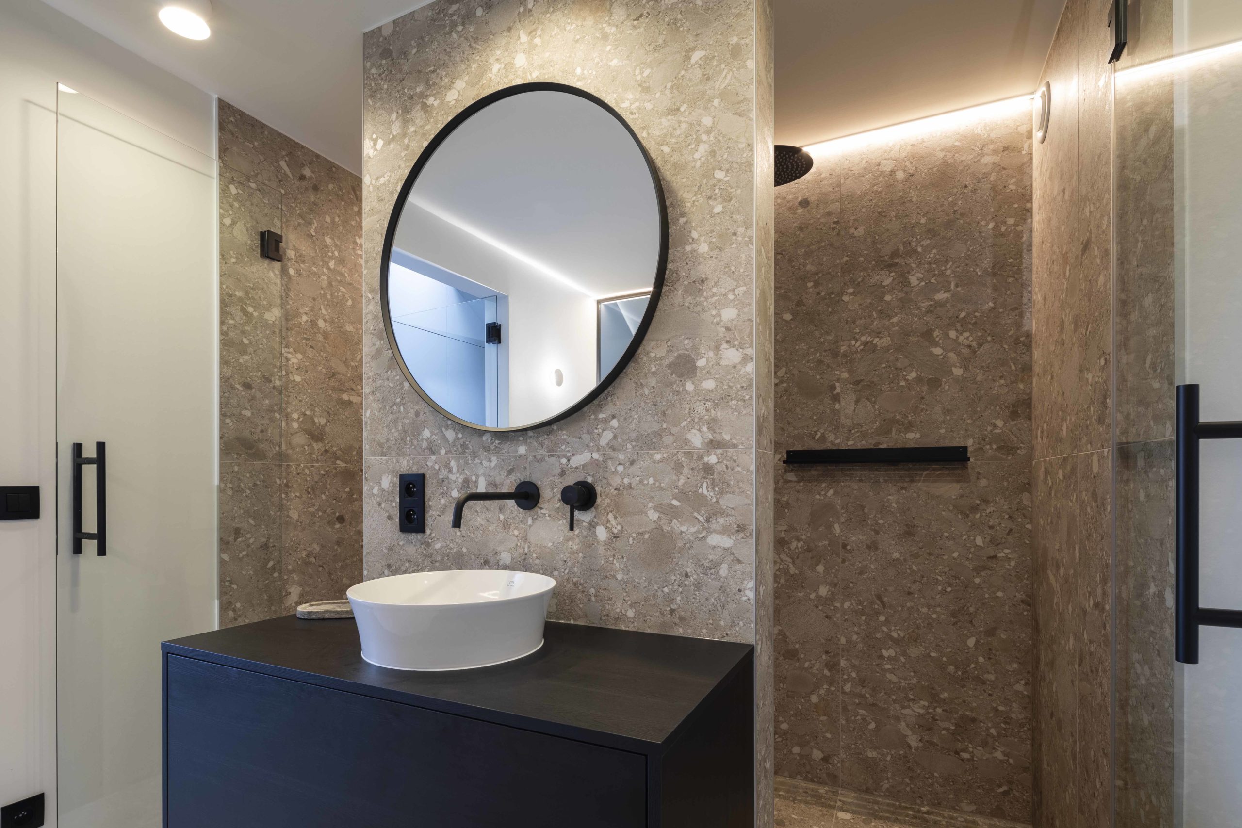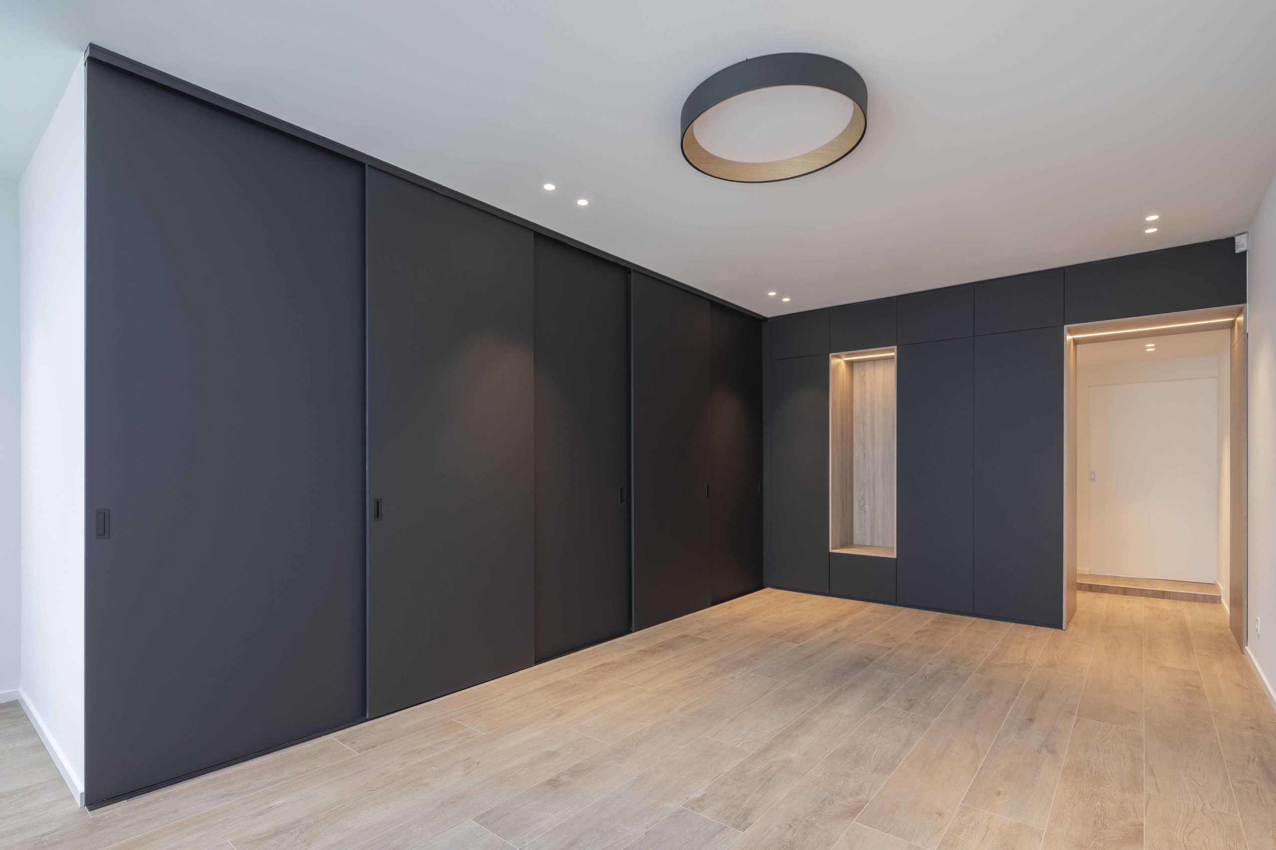 Conception intérieure du choix des sols et éclairages, aux mobiliers sur-mesure, portes et couleurs et matière .